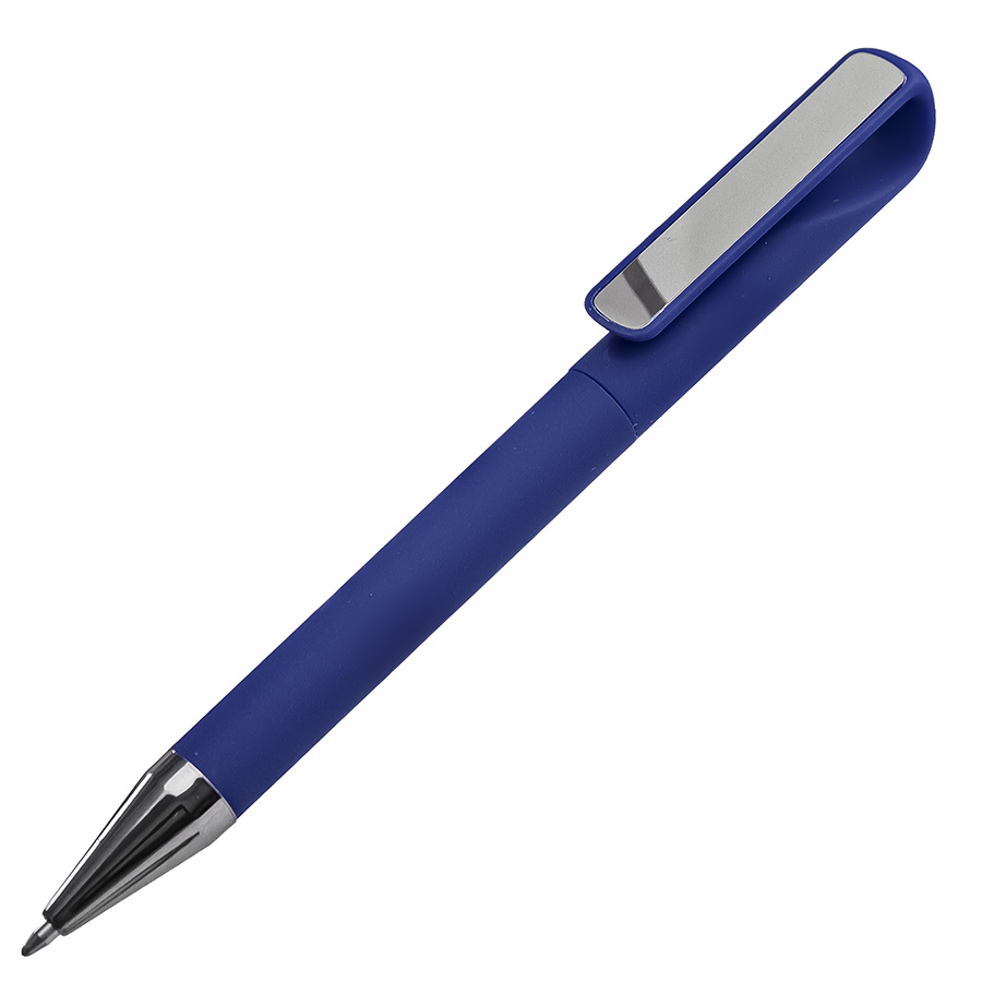 РУЧКА ШАРИКОВАЯ GLOSSY GUN С ПОКРЫТИЕМ SOFT TOUCH, СИНИЙ/ТЕМНО-СЕРЫЙ, ПЛАСТИК, МЕТАЛЛ
