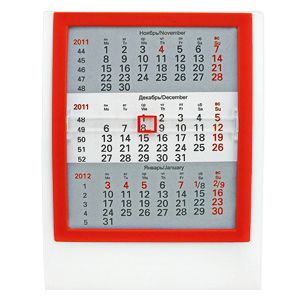Календарь настольный на 2 года; белый с красным; 12,5х16 см; пластик; шелкография, тампопечать