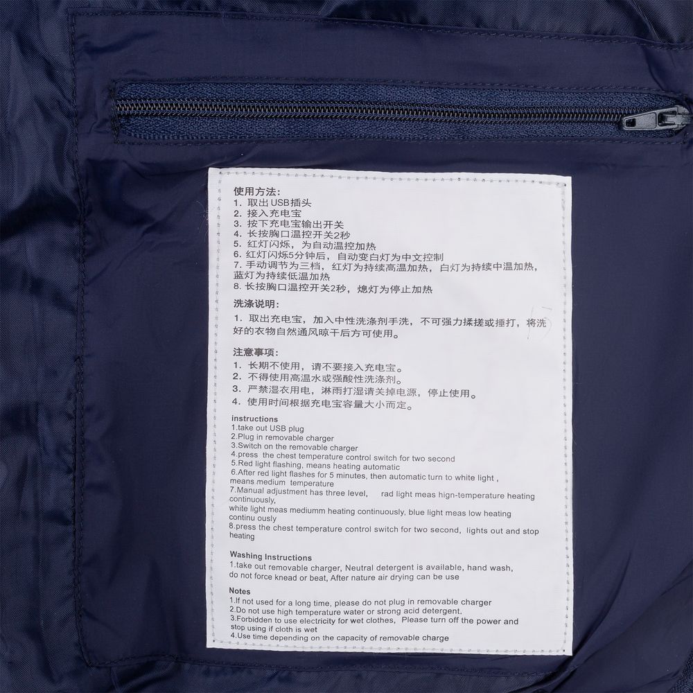 Утепленная куртка со встроенным нагревательным элементом из углеродного волокна в области спины и шеи. Работает от внешнего аккумулятора (в комплект не входит), подарит ощущение тепла и комфорта в любую погоду.Нагрев осуществляется благодаря специальной высокотехнологичной пленке из углеродных нанотрубок, расположенной под подкладкой изделия. Для наибольшего комфорта можно вручную выбрать один из трех режимов работы или воспользоваться автоматическим: после 5 минут работы на максимальном уровне нагрева грелка самостоятельно перейдет в режим средней интенсивности.При использовании аккумулятора емкостью 10000 мАч нагревательный элемент будет работать от 6 до 12 часов в зависимости от выбранного режима работы и температуры окружающей среды.Активация подогрева: