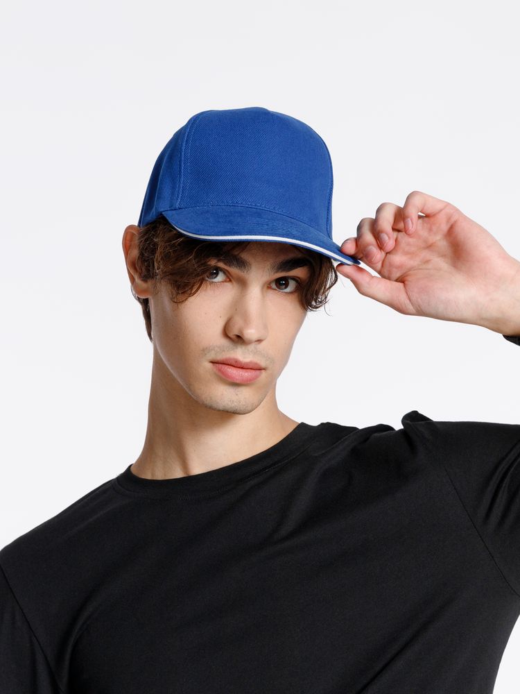 Бейсболка Classic 2.0, ярко-синяя с белым кантом