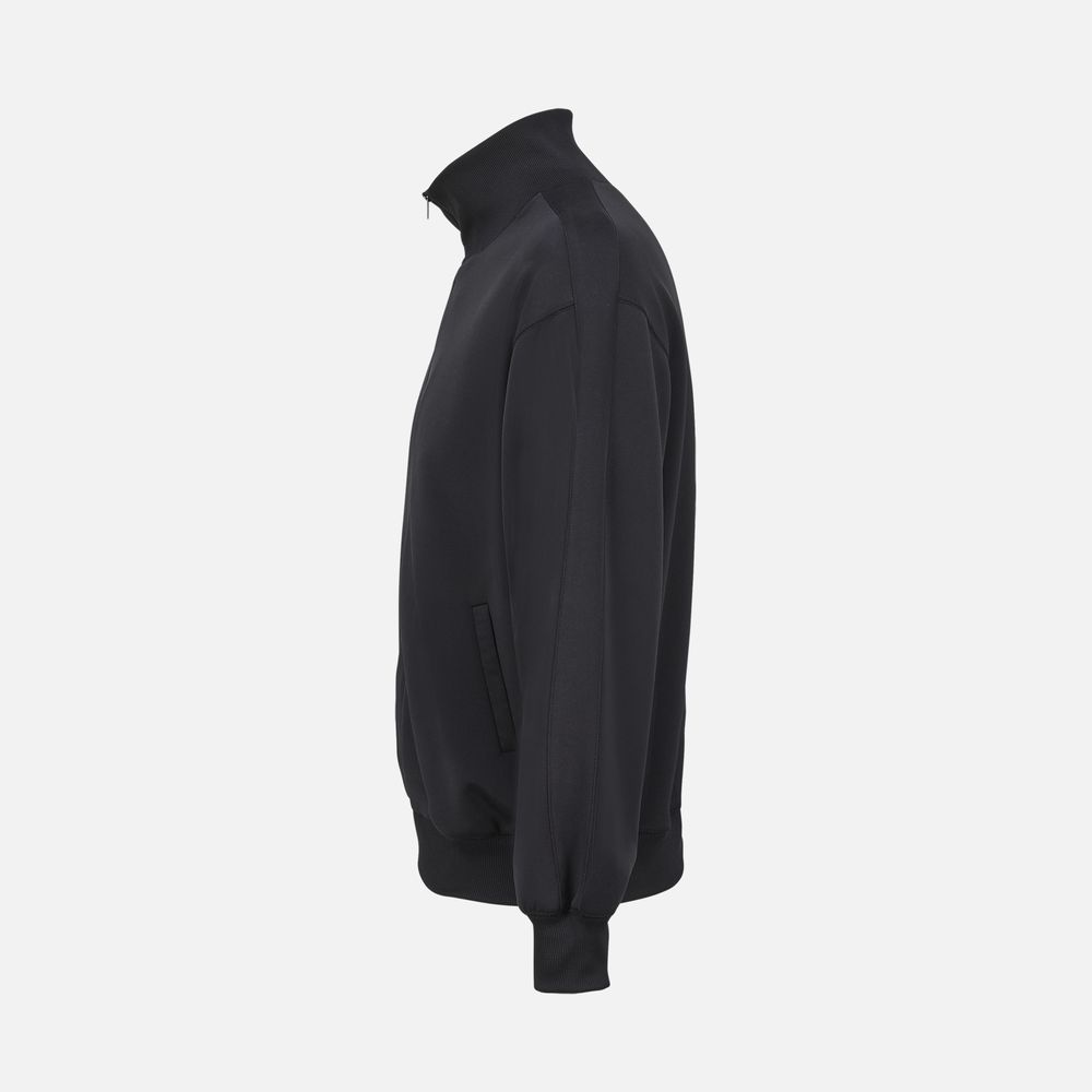 Спортивная куртка со свободной посадкой. Выполнена из высокотехнологичного трехслойного материала, известного как ткань скуба или трикотажный неопрен, в самом центре которого спрятаны объемные нити текстурированного полиэстера.Такой «сэндвич» хорошо держит форму (а еще приятно пружинит под пальцами), но при этом остается легким и эластичным, не сковывает движений и отводит лишнюю влагу. Внутренняя ячеистая структура не препятствует воздушному обмену, позволяя коже дышать, — а значит, больше никакого «эффекта парника» во время тренировки или активной прогулки.