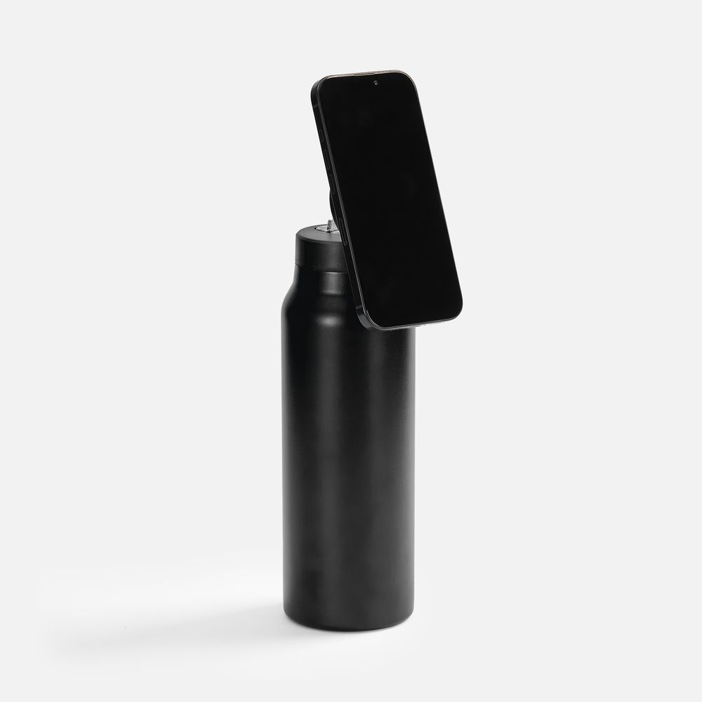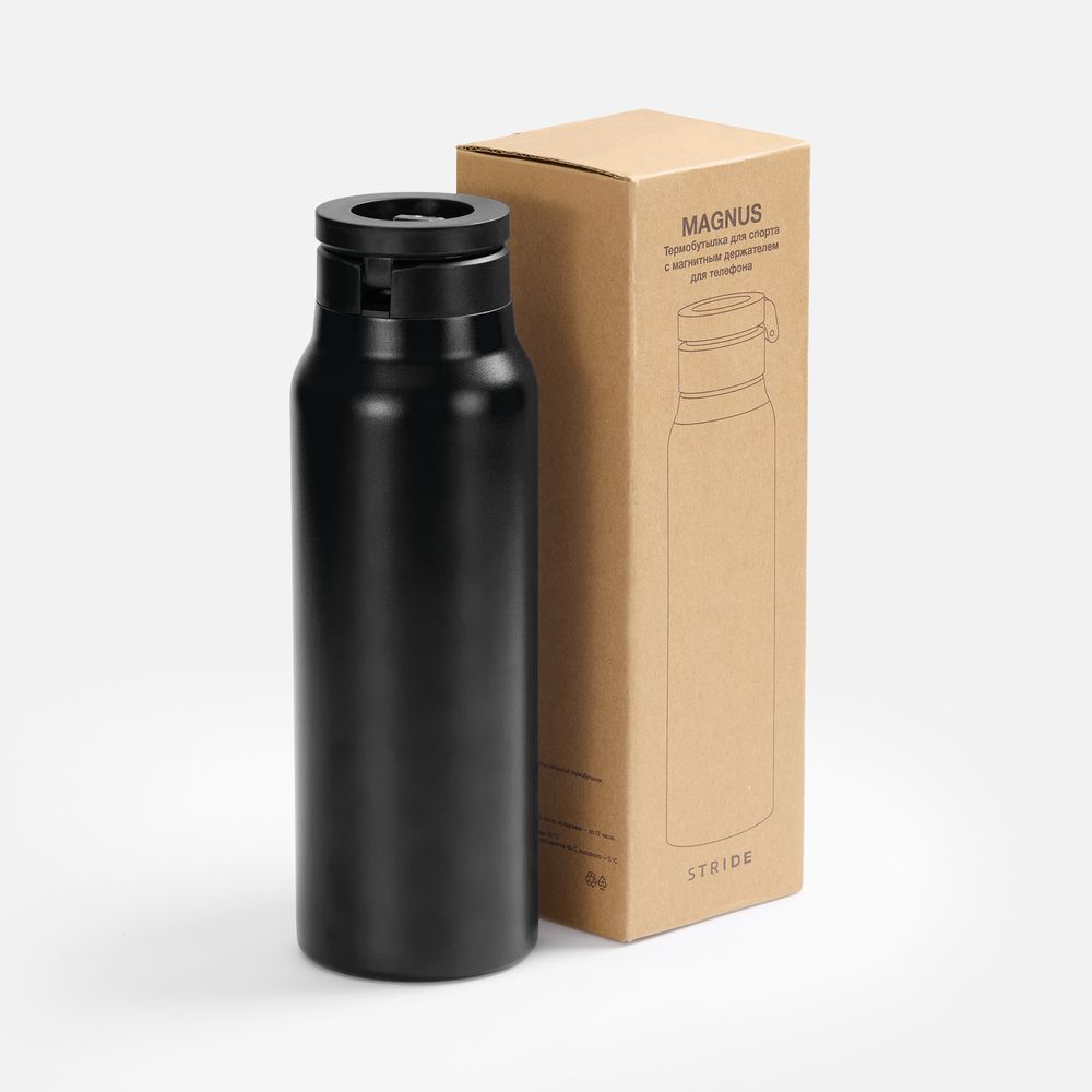 ТЕРМОБУТЫЛКА MAGNUS С МАГНИТНЫМ ДЕРЖАТЕЛЕМ ДЛЯ ТЕЛЕФОНА, ЧЕРНАЯ