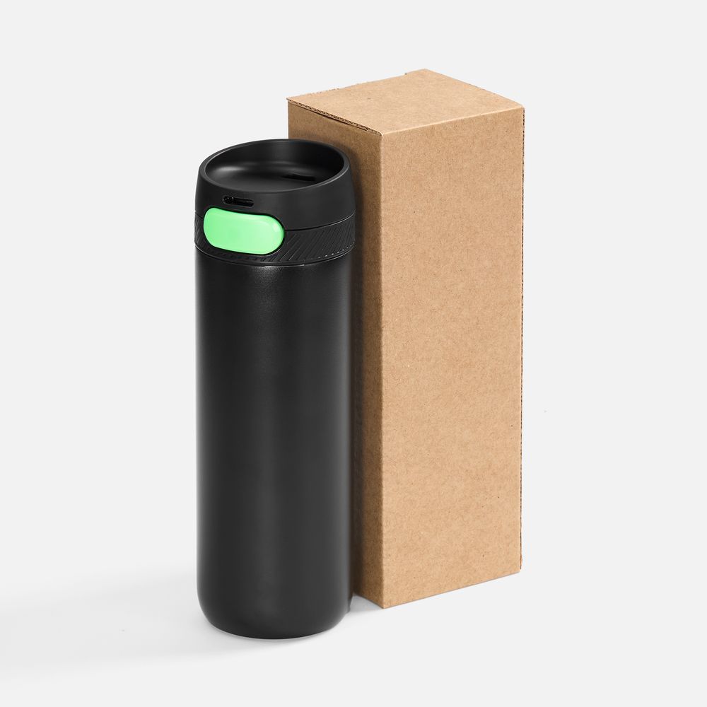 Термостакан X1 с цветной кнопкой, черный с зеленым