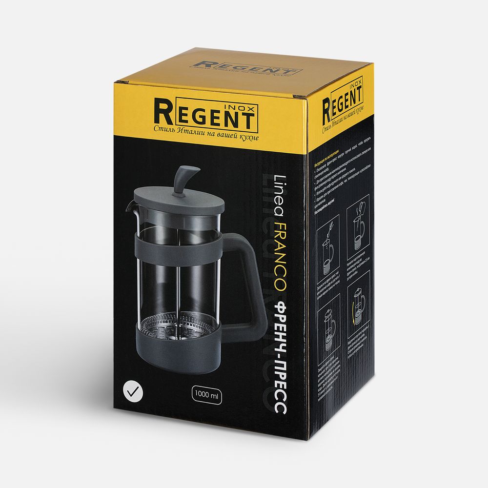 Френч-пресс Linea Franco — это превосходное качество и современный дизайн. Колба из боросиликатного стекла способна выдерживать температуры до +110°С. Пластиковые детали изготовлены из прочного и нетоксичного материала, а пресс-фильтр — из нержавеющей стали. Носик с системой «антикапля» предотвращает проливание, позволяя аккуратно наливать горячий чай или кофе. Прозрачные стенки позволяют легко определить крепость заваренного напитка. Модель также оснащена ненагревающейся ручкой, что делает использование удобным и безопасным.Емкость 1000 мл.Поставляется в подарочной коробке.