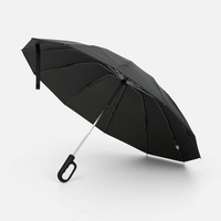 Зонт обратного сложения inLoop с ручкой-карабином, черный
