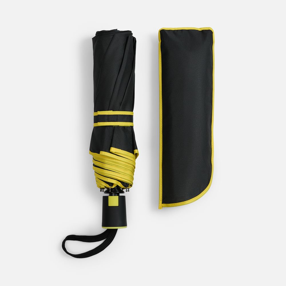 Зонт складной Edgeline, черный с желтым