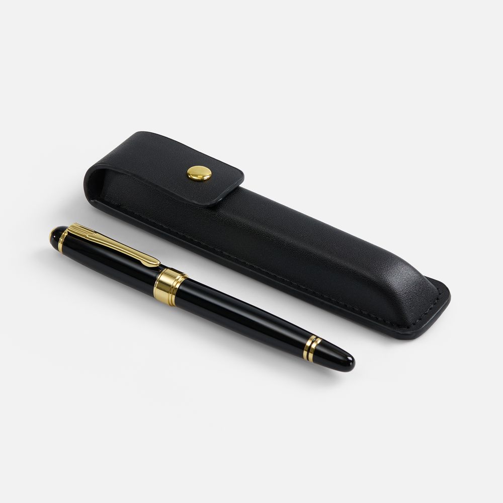 Vernis — идеальный спутник для деловых встреч и важных моментов. Роллер с лакированным корпусом и золотистыми деталями выглядит солидно и надежно, так что подойдет для подарка руководителю или ценному сотруднику. Футляр изготовлен из искусственной кожи, застегивается на кнопку.