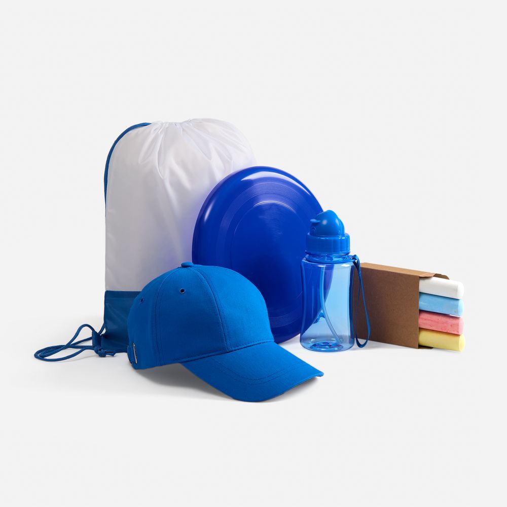 Детский набор для творчества: 4 цветных мелка, бутылка для воды, стильная бейсболка с защитой от солнца, тарелка-фрисби для самых активных и яркий детский рюкзак-мешок — все, что нужно для творческих приключений на свежем воздухе.Емкость бутылки 350 мл.