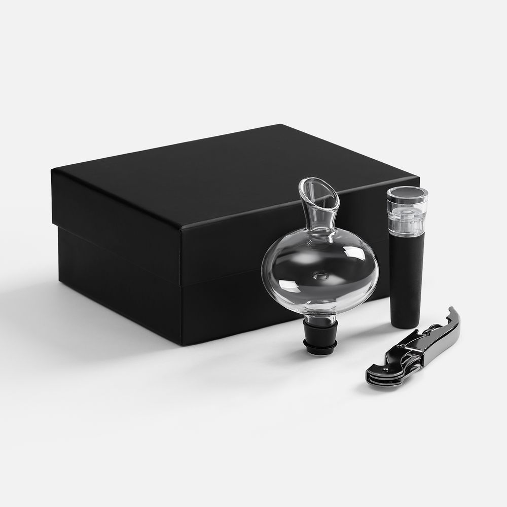 Миниатюрный набор для настоящего винного ценителя. Нож сомелье легко извлекает пробку из бутылки, аэратор насыщает вино воздухом и улучшает его вкус, а винная пробка с насосным механизмом обеспечивает герметичность, продлевая свежесть напитка и сохраняя его лучшие вкусовые качества.Подарок, который вдохновит и поможет начать незабываемое путешествие в мир вина!В набор входят: