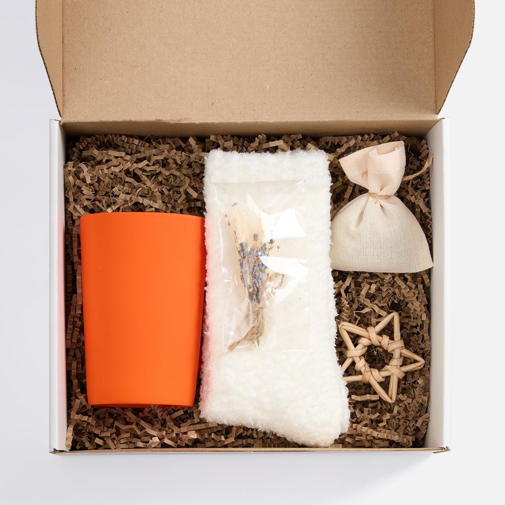 Набор Sockshire — готовое решение для теплого подарка.В изящной коробке — лаконичный дуэт, созданный исключительно для комфорта и спокойных мгновений: софт-тач кружка для любимых напитков и мягкие пушистые носки для полного расслабления. Дарите уют без лишних слов.Емкость кружки 420 мл.