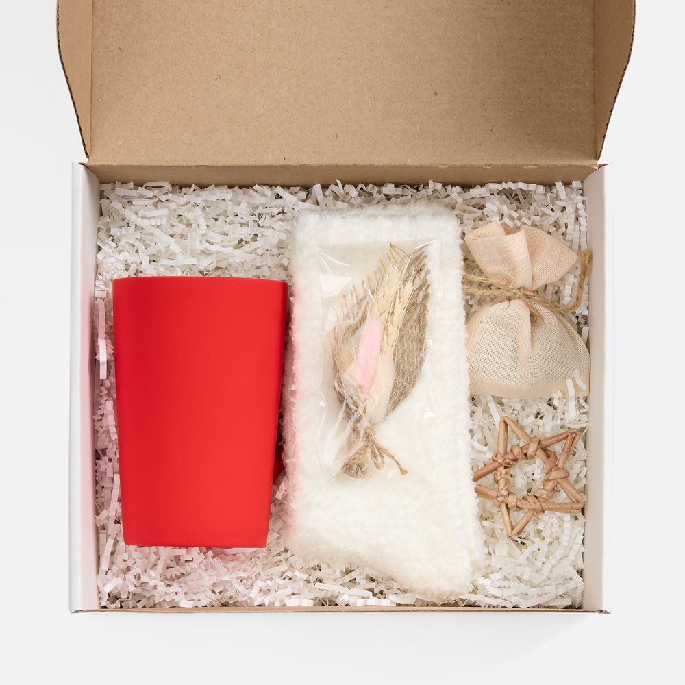 Набор Sockshire — готовое решение для теплого подарка.В изящной коробке — лаконичный дуэт, созданный исключительно для комфорта и спокойных мгновений: софт-тач кружка для любимых напитков и мягкие пушистые носки для полного расслабления. Дарите уют без лишних слов.Емкость кружки 420 мл.