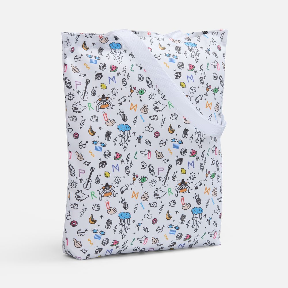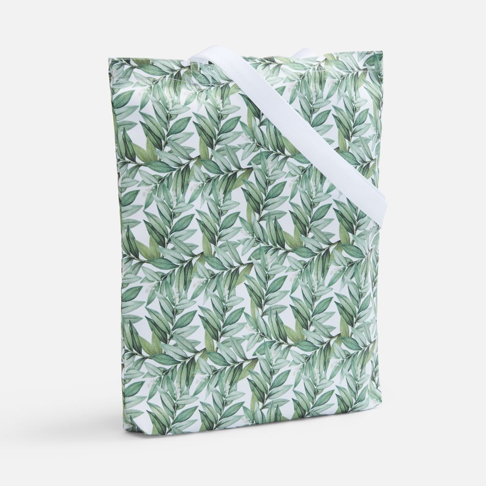 Сумка Bolsana с печатью на заказ — это полноценный продукт, в котором дизайн становится частью самой вещи и открывает возможности для сложной графики, градиентов, паттернов и ярких визуальных решений. Такие сумки выглядят продуманнее и эстетичнее по сравнению с классическим промо и воспринимаются как стильный аксессуар, а не как рекламный носитель — именно поэтому их используют в повседневной жизни, а не откладывают. Бренд в этом случае становится частью визуального образа, оставаясь в поле зрения дольше и работая эффективнее.Печать рисунка в крое, известной также как all-over или seamless print, предполагает нанесение стойкого полноцветного рисунка (паттерна или узора, не требующего совмещения) на ткань методом сублимации еще до этапа пошива. Такой способ брендирования отличается от печати на готовом изделии и имеет свои уникальные преимущества:В стоимость входят запечатка полотна бесшовным паттерном методом сублимации, раскрой и пошив изделия.Приложите к заказу оригинал-макет закольцованного бесшовного (endless) узора или паттерна в виде квадрата или прямоугольника с разрешением 300 dpi в масштабе 1 к 1. Полные технические требования к оригинал-макетам смотрите в пункте «».Практичная сумка-шопер с донной складкой, которую можно носить как в руке, так и на плече. В ней достаточно места для документов или повседневных покупок, ланч‑бокса или небольших вещей.Особенность сумки — материал с биверным (саржевым) переплетением: синтетические нити выведены на лицевую сторону, а хлопковые — на изнаночную. Это сочетание дает одновременно прочность и комфорт в использовании, обеспечивая высокую износостойкость и длительный срок службы, а также позволяет выполнять на ней нанесение методом сублимации.