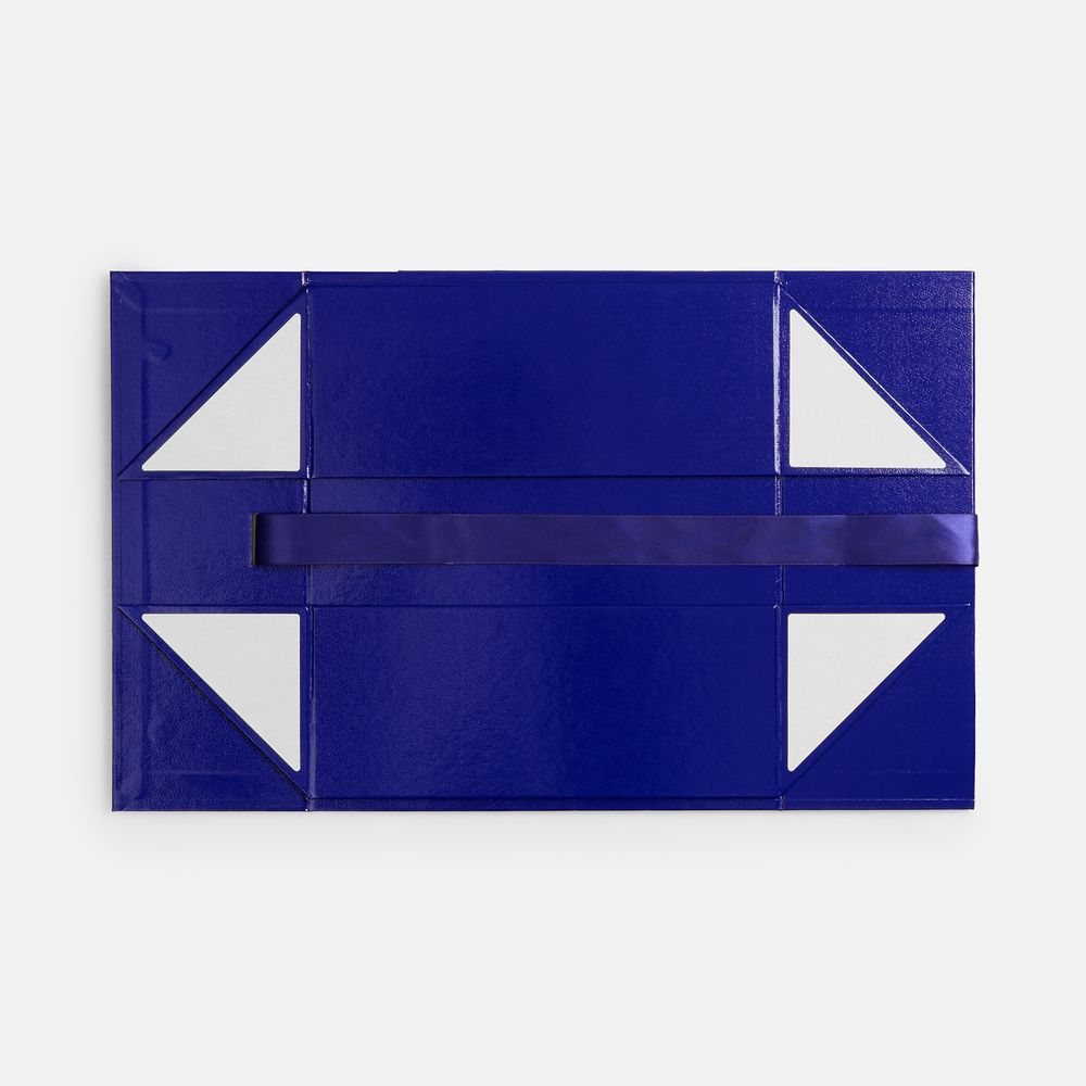 Коробка из переплетного картона с лайнером, ламинированым полуглянцевой текстурной пленкой и устойчивого к царапинам. Крышка на двух магнитах дополнительно фиксируется репсовой лентой.Толщина картона 2 мм.Длина ленты 80 см, ширина ленты 2,5 см. Поставляется в плоском виде.Сборка осуществляется на скотч.Лента поставляется в сложенном виде и имеет складки на местах сгибов.