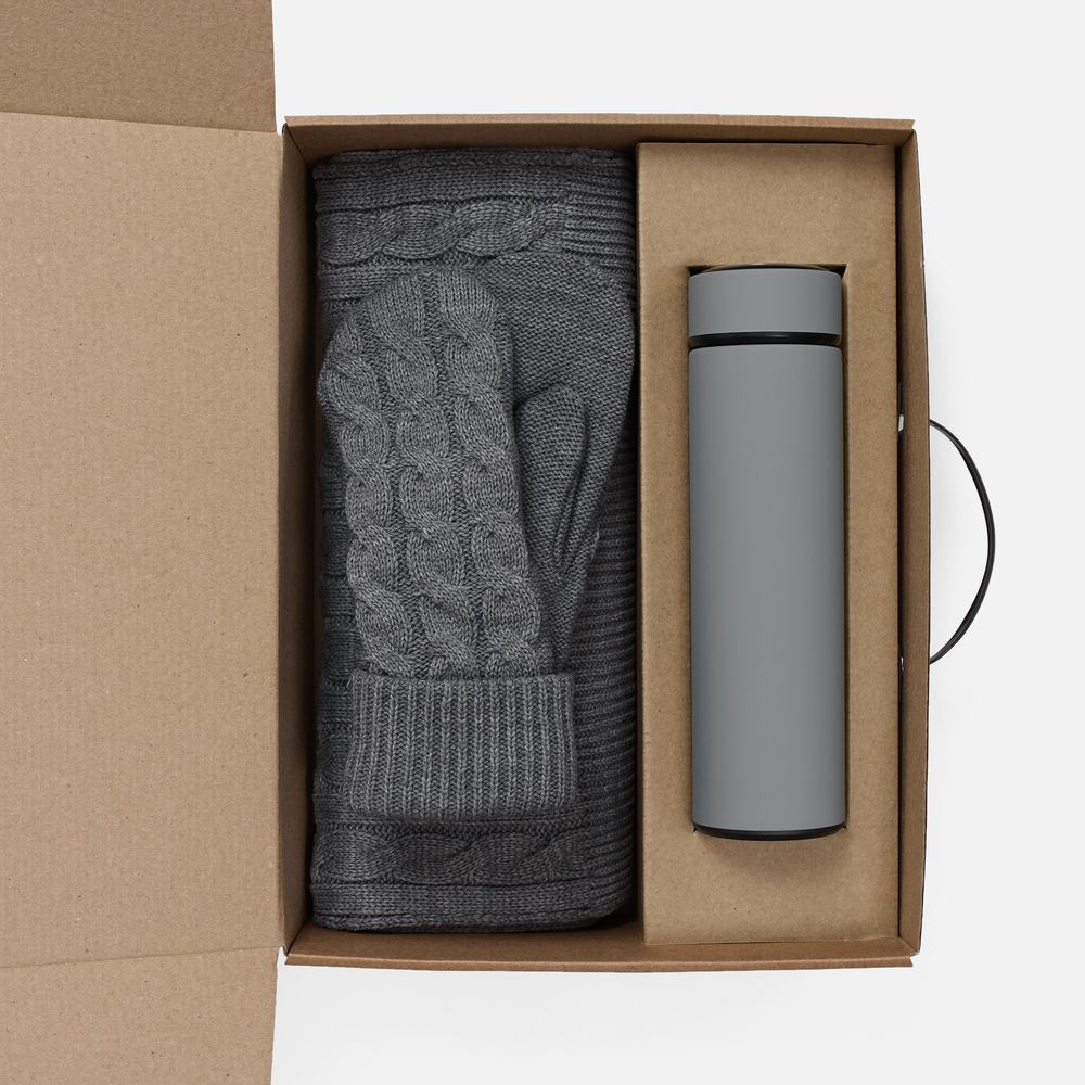 МАТЕРИАЛ шарф, варежки - акрил 100%; термос - нержавеющая сталь, 304; покрытие софт-тач; коробка - микрогофрокартон