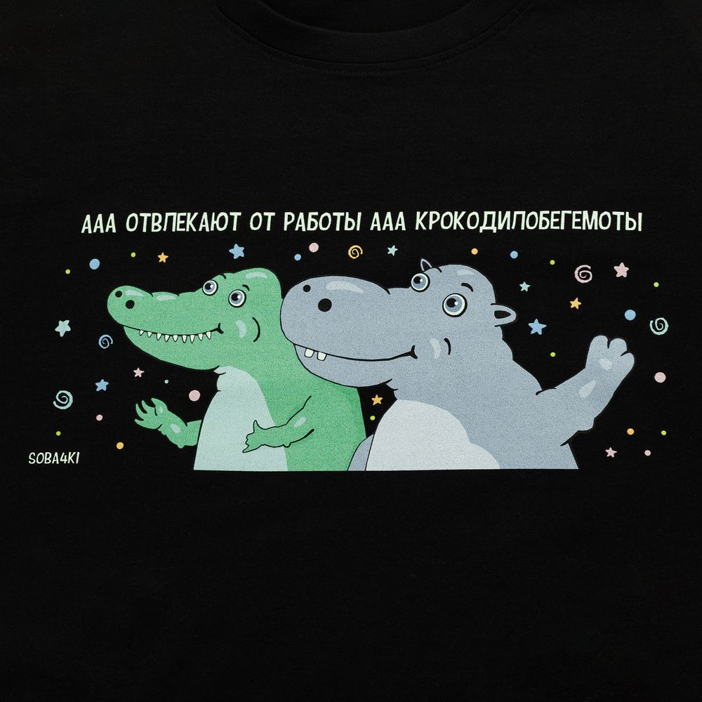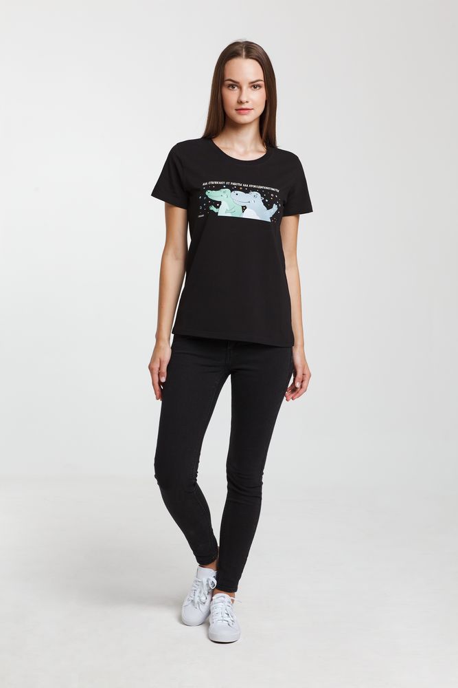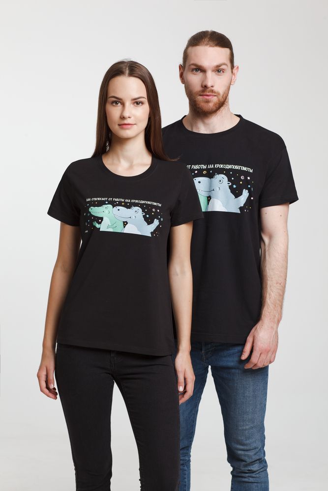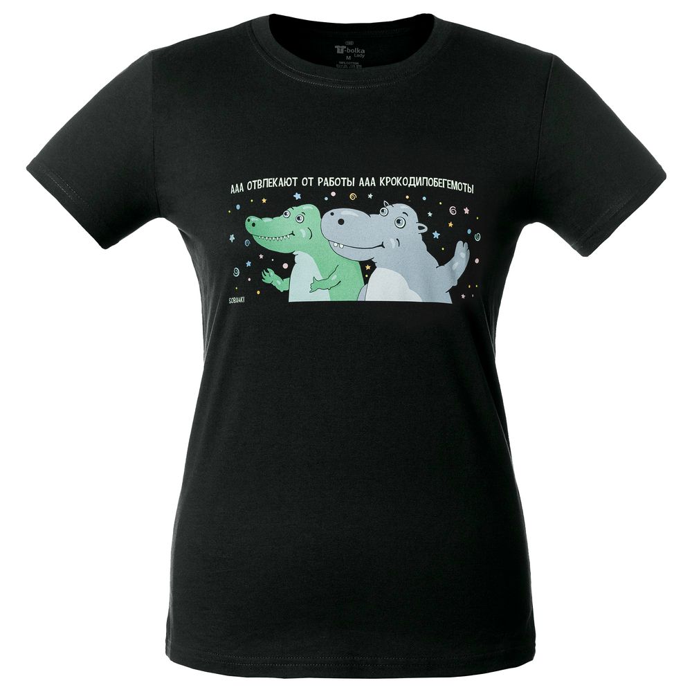 ФУТБОЛКА ЖЕНСКАЯ «КРОКОДИЛОБЕГЕМОТЫ», ЧЕРНАЯ