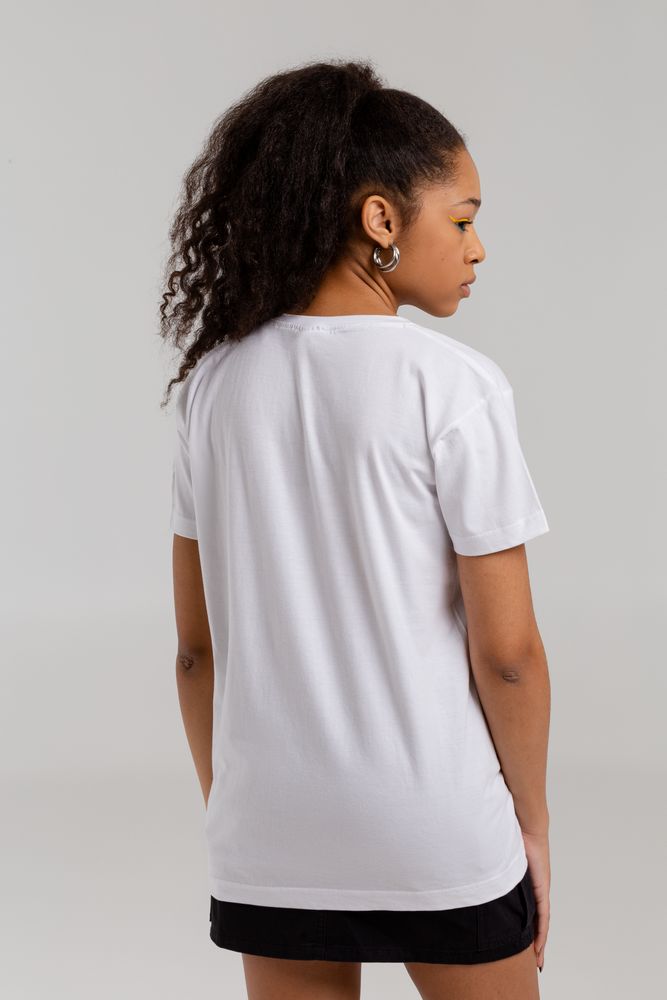 Женская футболка с уплотненными швами на плечах и двойным швом с эластаном. Четырехслойная резинка на воротнике предохраняет его от растяжения.