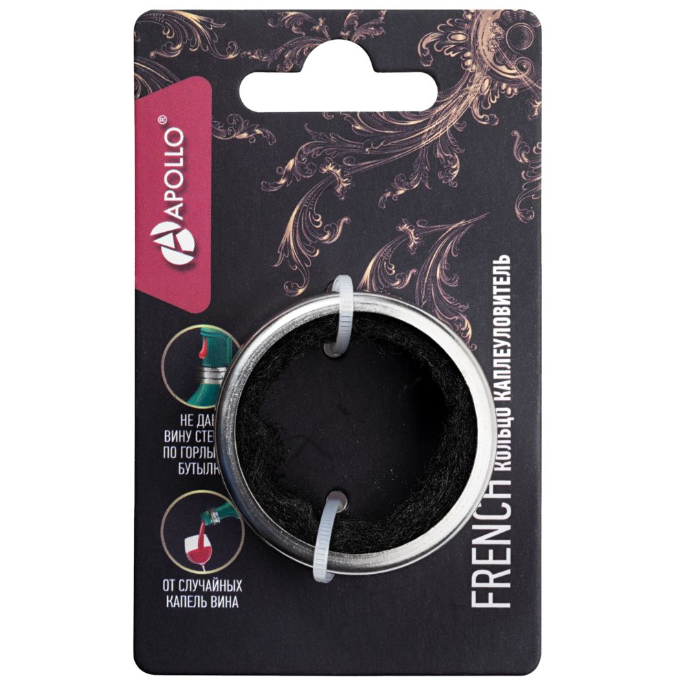 Кольцо предназначено для защиты поверхностей от капель вина. Кольцо надевается на горлышко открытой бутылки и не позволяет каплям стекать на стол или скатерть.Мойте только вручную. Не применяйте для мытья абразивные средства и щетки.Поставляется в блистерной упаковке.
