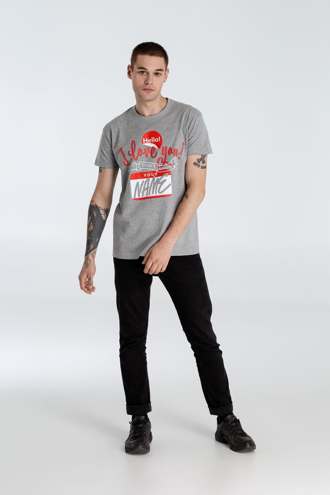 Футболка Hello! I Love You!, серый меланж