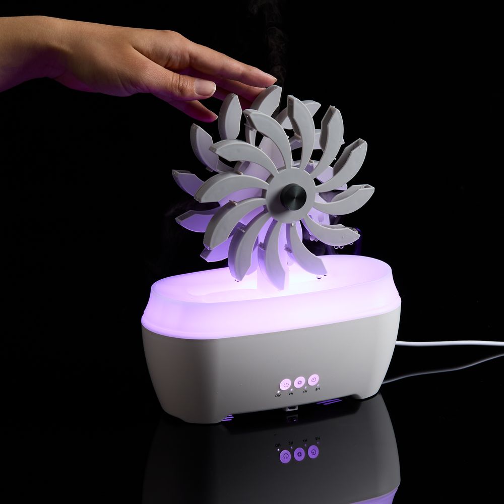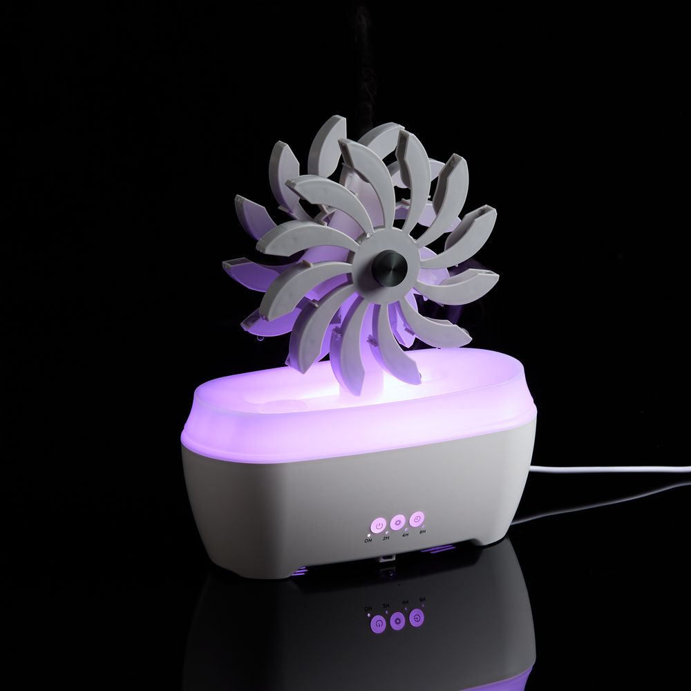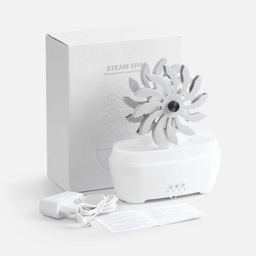 Увлажнитель создаст комфортный микроклимат и неповторимую атмосферу в помещении, а также позволит деликатно ароматизировать воздух. Добавьте ароматический раствор на водной основе или несколько капель эфирного масла, чтобы дополнительно расслабиться перед сном или лучше сконцентрироваться в течение рабочего дня.Отличительная черта модели Steam Spin — подвижный элемент с вращающимися лопастями, на которые поступает вода. Кому-то они напомнят водяную мельницу или электрическую турбину, а для кого-то станут незабываемым цветком бетонных джунглей. В любом случае их разнонаправленное движение — умиротворяющее и завораживающее зрелище.Поставляется в индивидуальной упаковке.